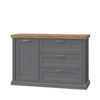 • frontovi fiokara su od rezbarenog medijapana lakiranog UV lakom sa soft mat efektom u grafit ili beloj boji, a dekorativna masivna pokrivna ploča od medijapana presvučena folijom u dekoru Pacifik orah