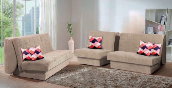 Garnitura klasičnog dizajna, podseća na nekadašnje “mojice”. Sastoji se iz kompleta trosed, dvosed i fotelja.