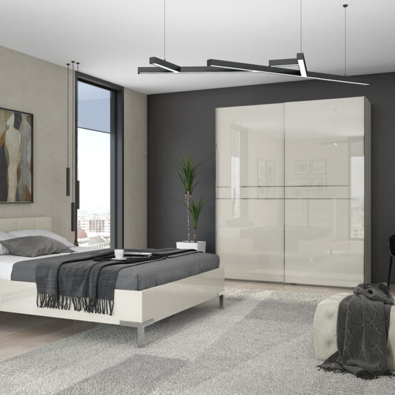 • frontovi i bočne strane plakara lakirani su UV lakom u visokom sjaju, u toploj bež ili beloj boji u kombinaciji sa elegantnim horizontalnim hromiranim lajsnama;