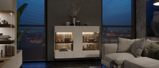 Komoda za dnevnu sobu iz kolekcije SKY45 sa jednim punim i 4 staklena krila