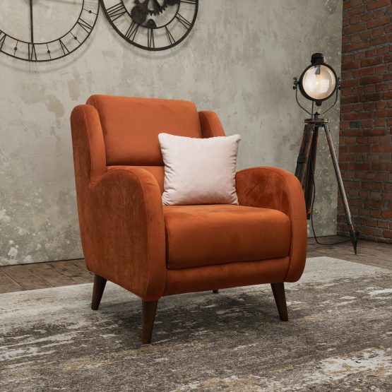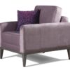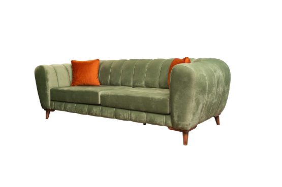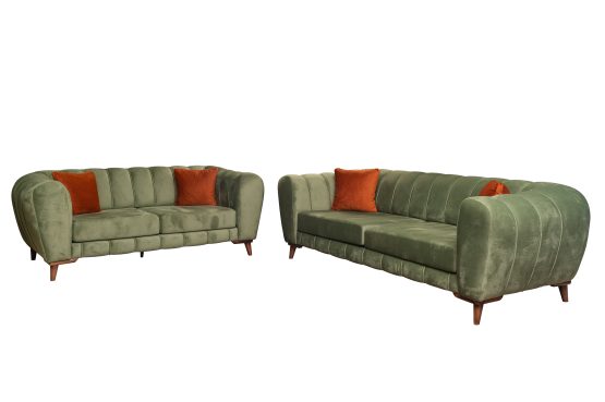 Garnitura modernog dizajna, sa drvenim nogarima. Sastoji se iz kompleta trosed, dvosed i fotelja. Postoji mogućnost kupovine zasebnih elemenata, kao i kombinacije boja, dezena… Veoma udobna, sedeći deo sunđer (gustina 30), koja se nalazi na elastičnim gurtnama koje povećavaju osećaj udobnosti. Veliki izbor materijala. Drvena konstrukcija omogućava čvrstoću i dugotrajnost, a drveni nogari stabilnost.