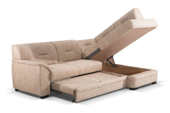 Ugaona garnitura Nevada je modernog i svedenog dizajna koji odiše kvalitetom i lepim linijama. Dizajn između klasičnog i modernog čini garnituru optimalnom za različite prostore. Veoma je komforna a poseduje i boks za odlaganje posteljine.