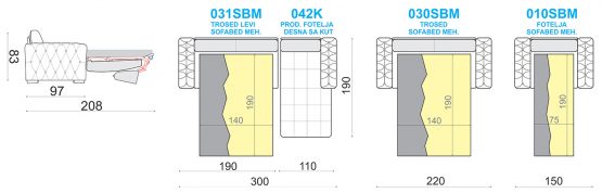 • Trosed/sofabed + Meridijan sa kutijom – 300 x 190 x 83 – 168970 rsd