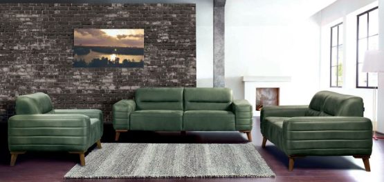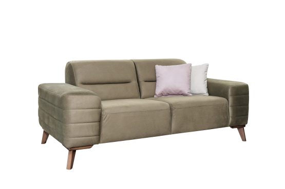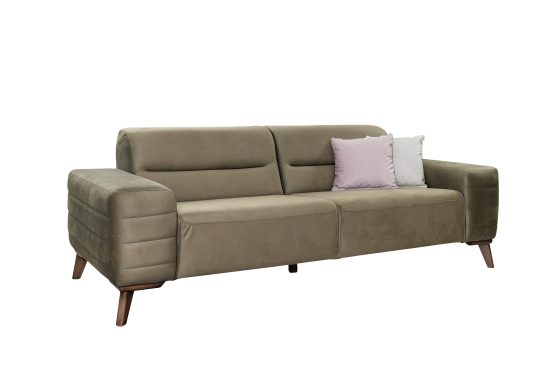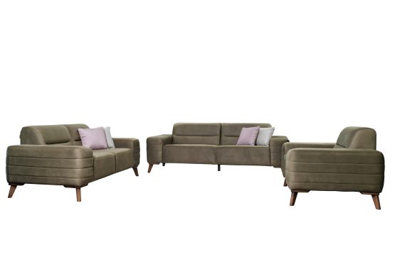 Garnitura modernog dizajna, sa drvenim nogarima. Sastoji se iz kompleta trosed, dvosed i fotelja. Postoji mogućnost kupovine zasebnih elemenata, kao i kombinacije boja, dezena… Veoma udobna, sedeći deo urađen u HR peni, koja se nalazi na elastičnim gurtnama koje povećavaju osećaj udobnosti. Veliki izbor materijala od kojih preporučujemo štof kartu Polo. Drvena konstrukcija omogućava čvrstoću i dugotrajnost, a drveni nogari mogućnost odabira boja.