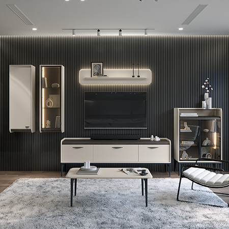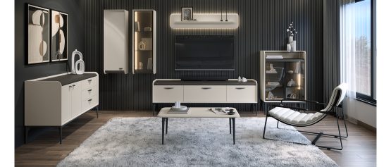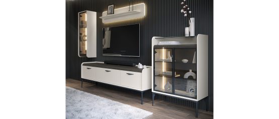 Viseća komoda za dnevnu sobu iz kolekcije SOFFY sa krilom sa aluminijumskim ramom.