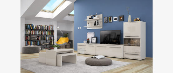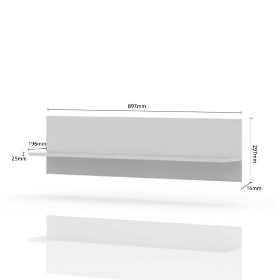 Viseća polica, širine 90cm, kompletno lakirana UV lakom u visokom sjaju najnovije tehnologije. Element je opremljen okovom za kačenje na zid