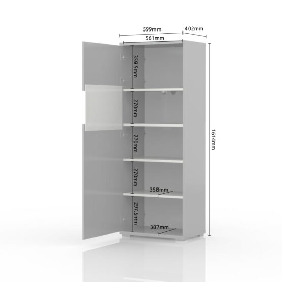 • Funkcionalna vitrina iz kolekcije nameštaja PIANO sa jednim staklenim krilom, dizajnirane geometrijske forme.
