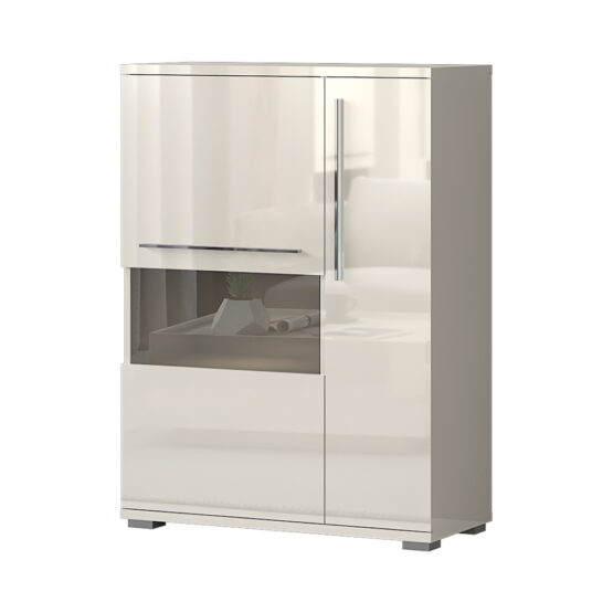 • Funkcionalna vitrina sa jednim punim krilom I jednim sa staklenim detaljem, dizajnirane geometrijske forme.